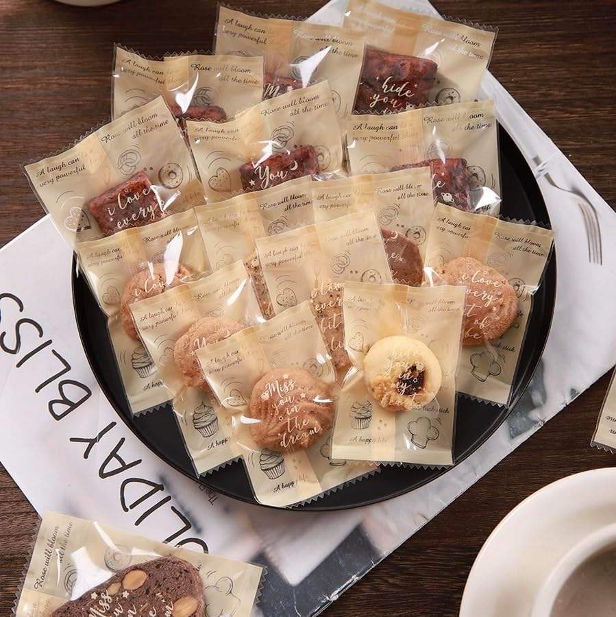 100Pcs 3.9" X 2.8" Plastic Candy Bag Vacuum Baking Sealer Bag for Packing Cookies Candies Snacks Grains Halloween Wedding Favors