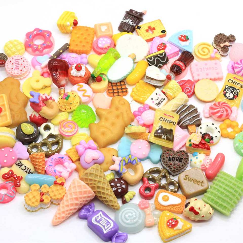100 Pezzi Cabochon in Resina con Disegni di Dolci, Caramelle, Ciambelle, Biscotti e Torte, Decorazioni per Artigianato