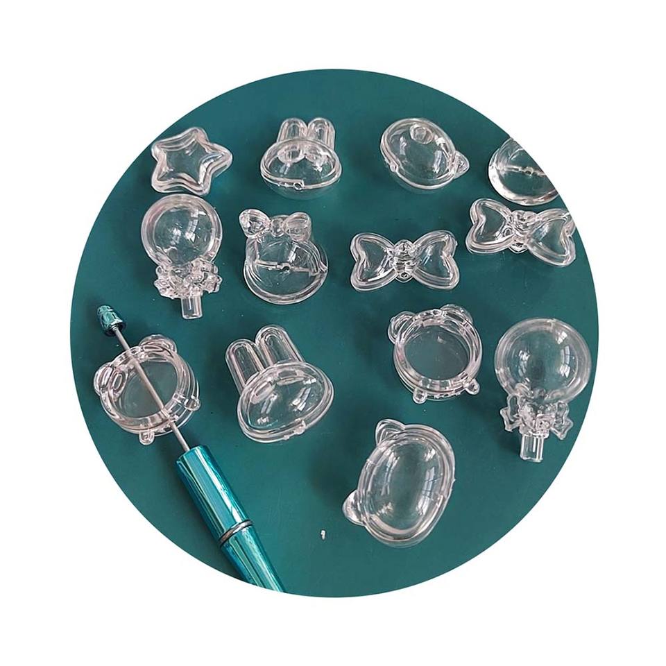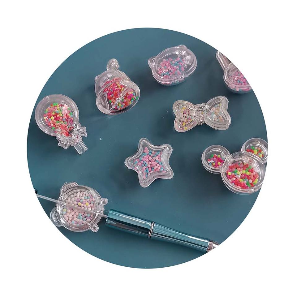 100 pezzi perline di plastica con cornice trasparente vuota per penne di perline con fiocco di coniglio a forma di lecca-lecca a forma di perline