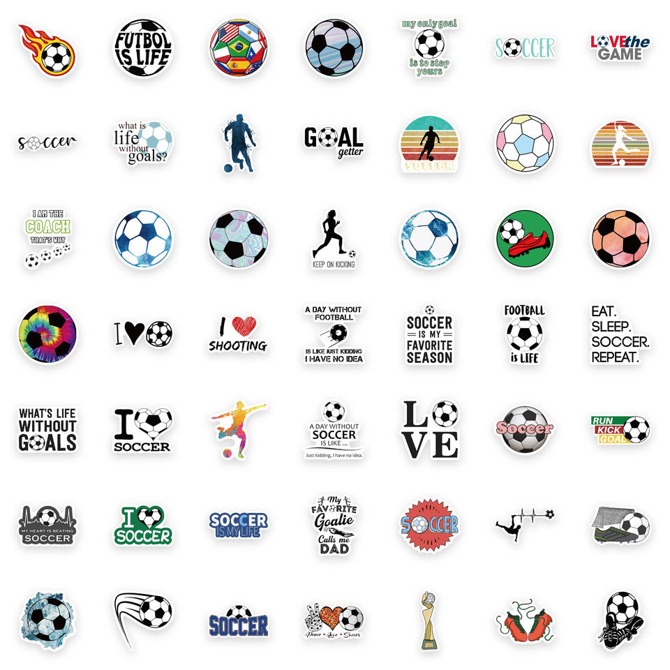 100Pcs Love Soccer Football Logo Decorative Stickers for Ball Laptop Wall Car Waterproof PVC Sport Label Pack