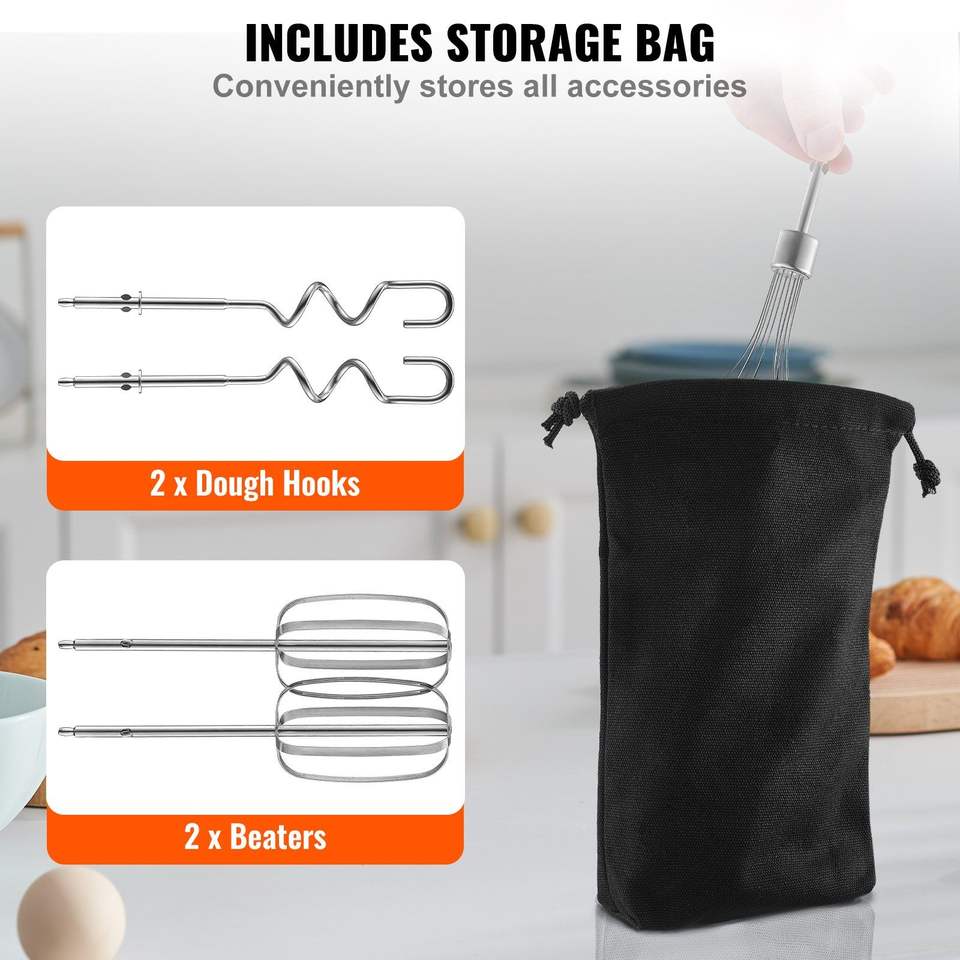 Frullatore Elettrico Portatile Senza Fili da 100W con Turbo Boost, Velocità Variabile Continua, Fruste e Ganci per Impastare, con Vano Portaoggetti