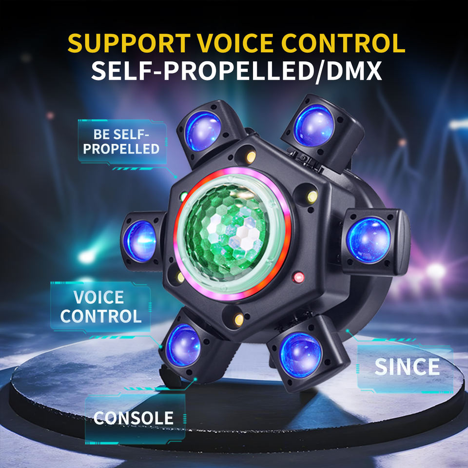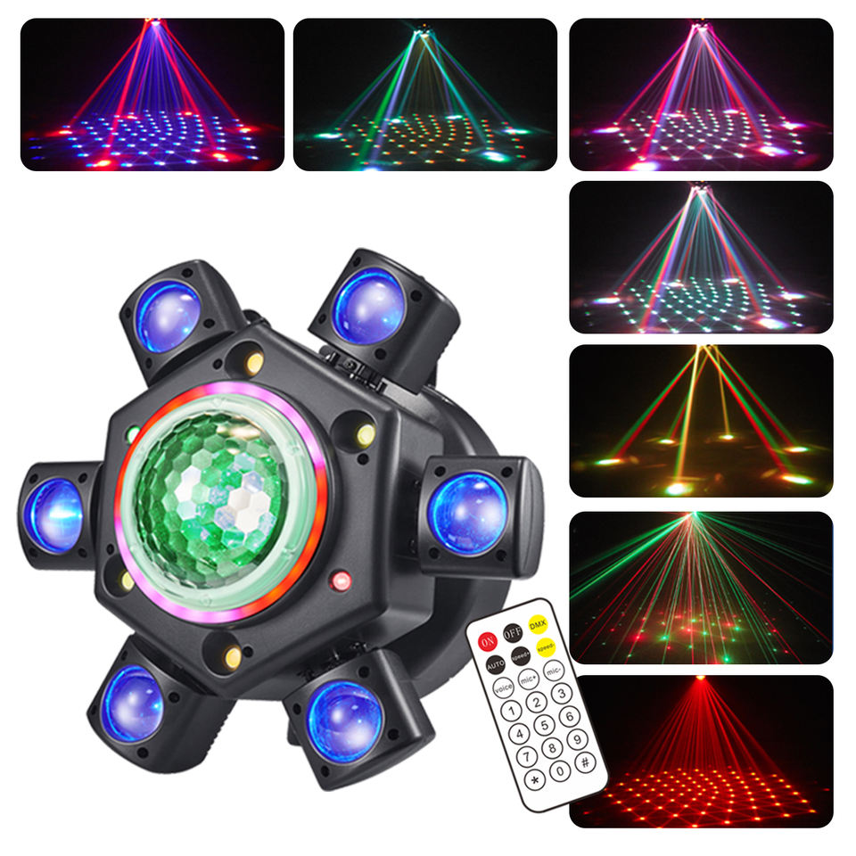 100W Six-Arm Magic Ball Moving Head LED Stage Beam Light with Red/Green Laser Strobe and DMX512 for Theme Parks and DJ Clubs