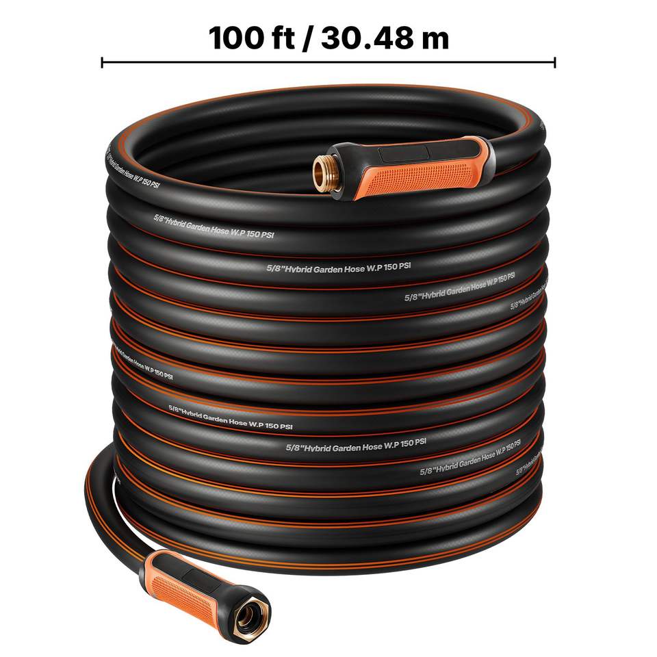 Tubo da Giardino in Gomma Rinforzata a 4 Strati da 30 Metri (5/8 Pollici), 150 PSI in Uso, 600 PSI in Rottura, Flessibile, Anti-Piega, per Esterni, Durata 10 Anni