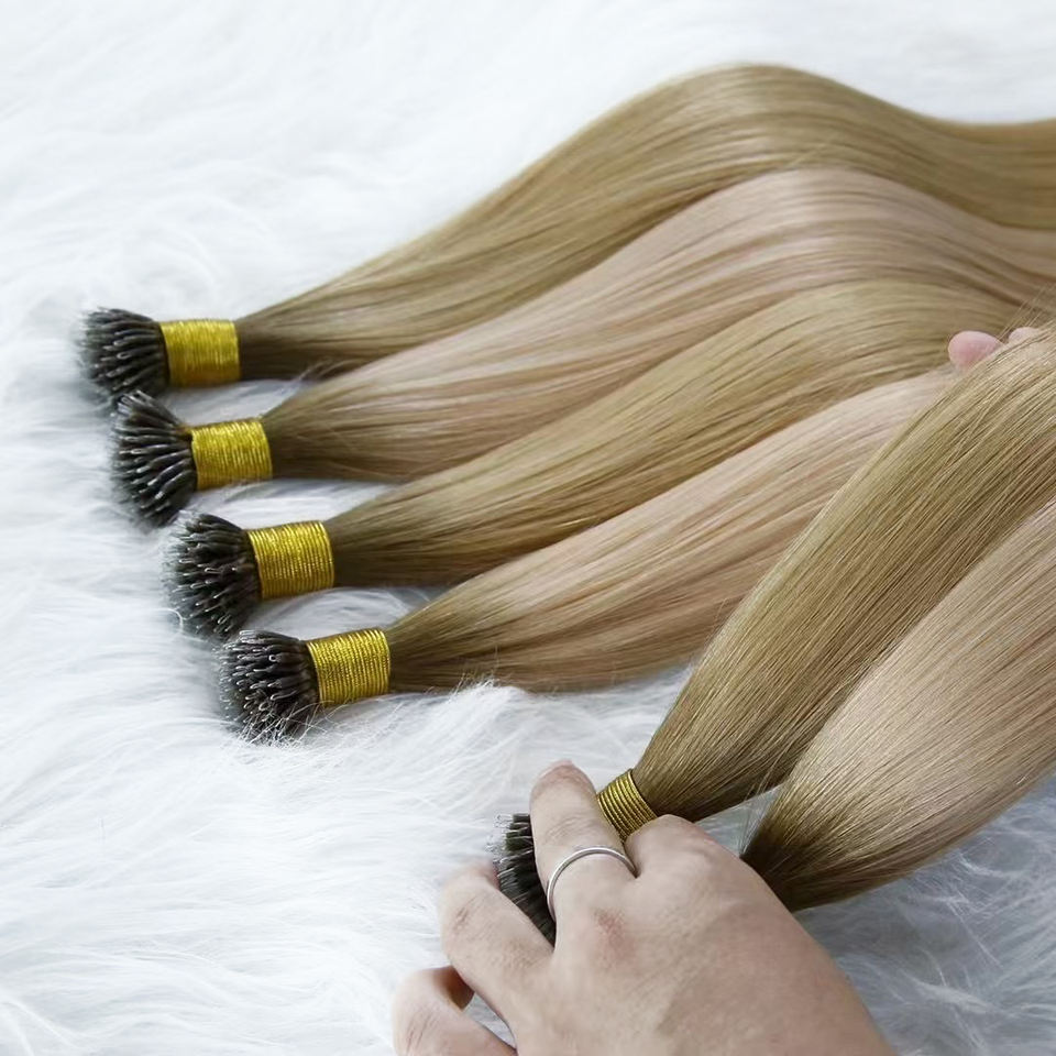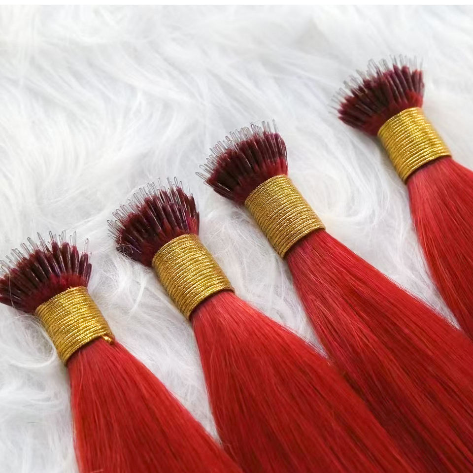 100g Pre-borsa personalizzabile peso colore rosso pieno cuticola europea Remy extension capelli umani con punta in metallo Nano colore chiaro