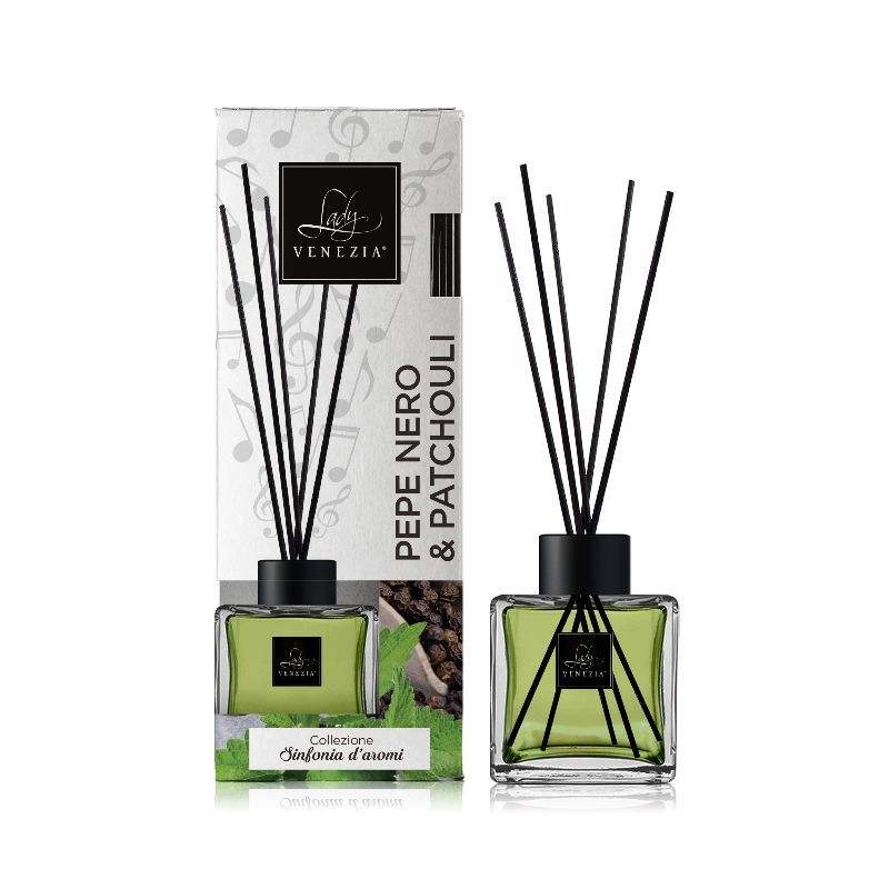 Diffusore per Ambienti con Bastoncini al Profumo di Pepe Nero e Patchouli, 100ml