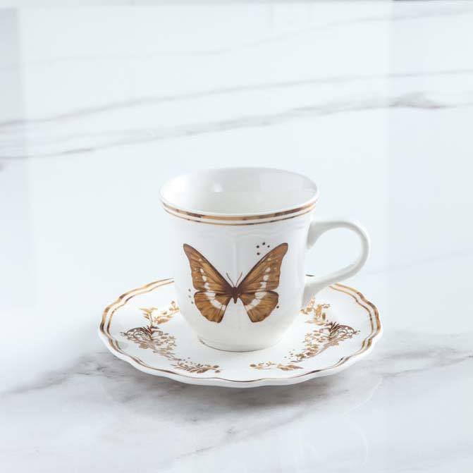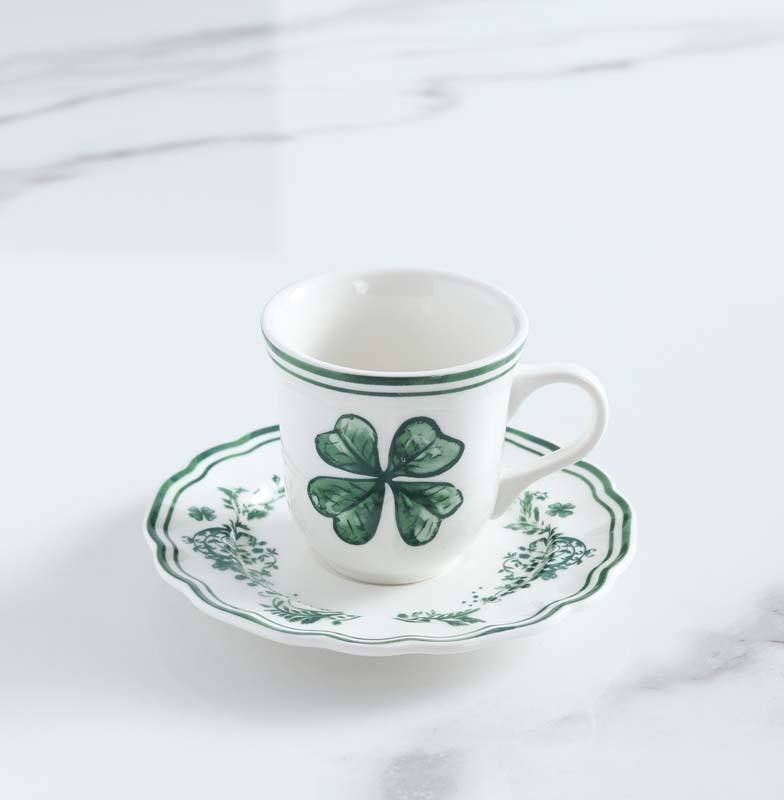 Set di Tazza e Piattino in Porcellana Moderna Europea Ecologica da 100ml Personalizzabile per Hotel, Lavabile in Lavastoviglie