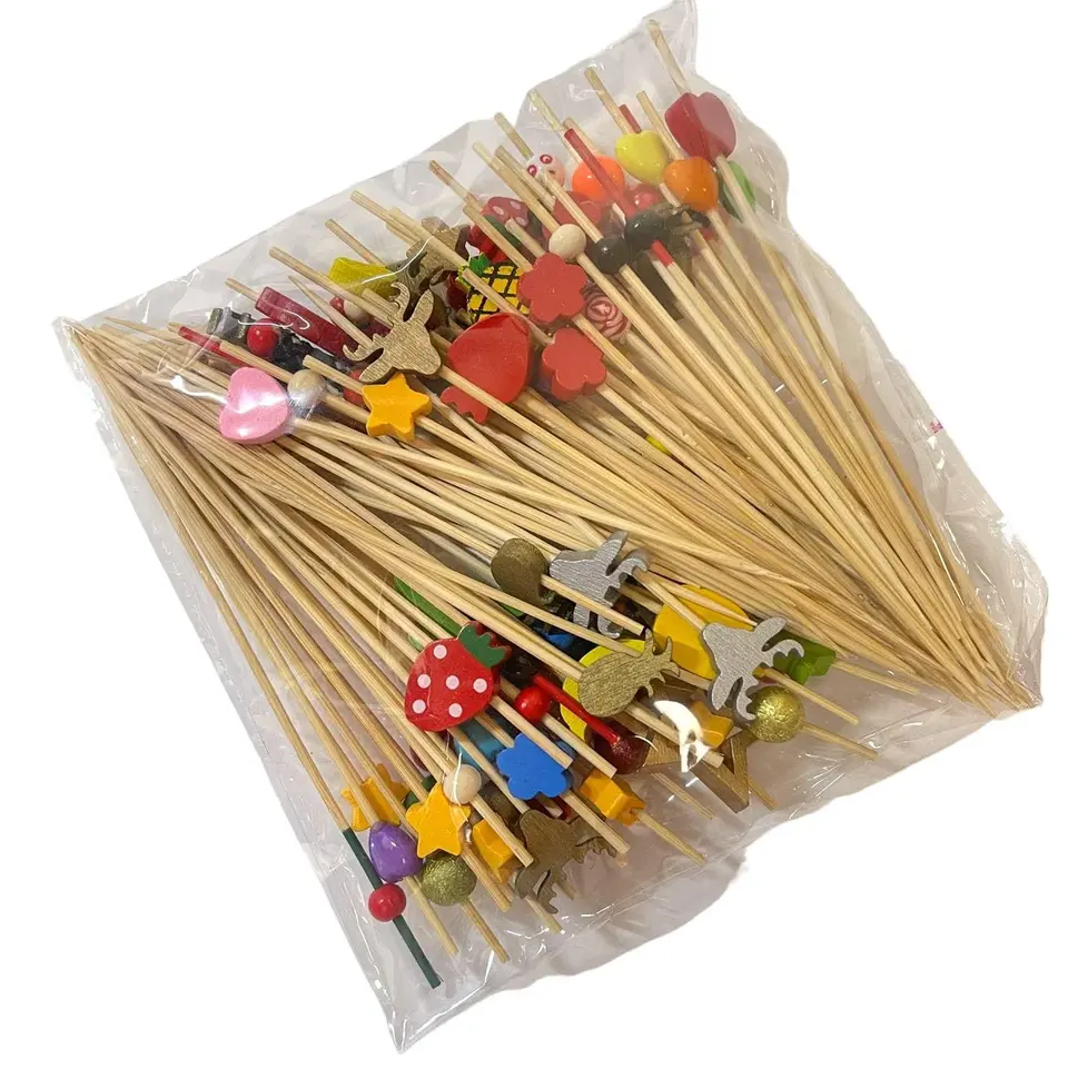 100 Pezzi Stuzzicadenti in Bambù da 5 Pollici per Cocktail, Assortiti per Aperitivi, Bevande e Frutta, Ideali per Feste