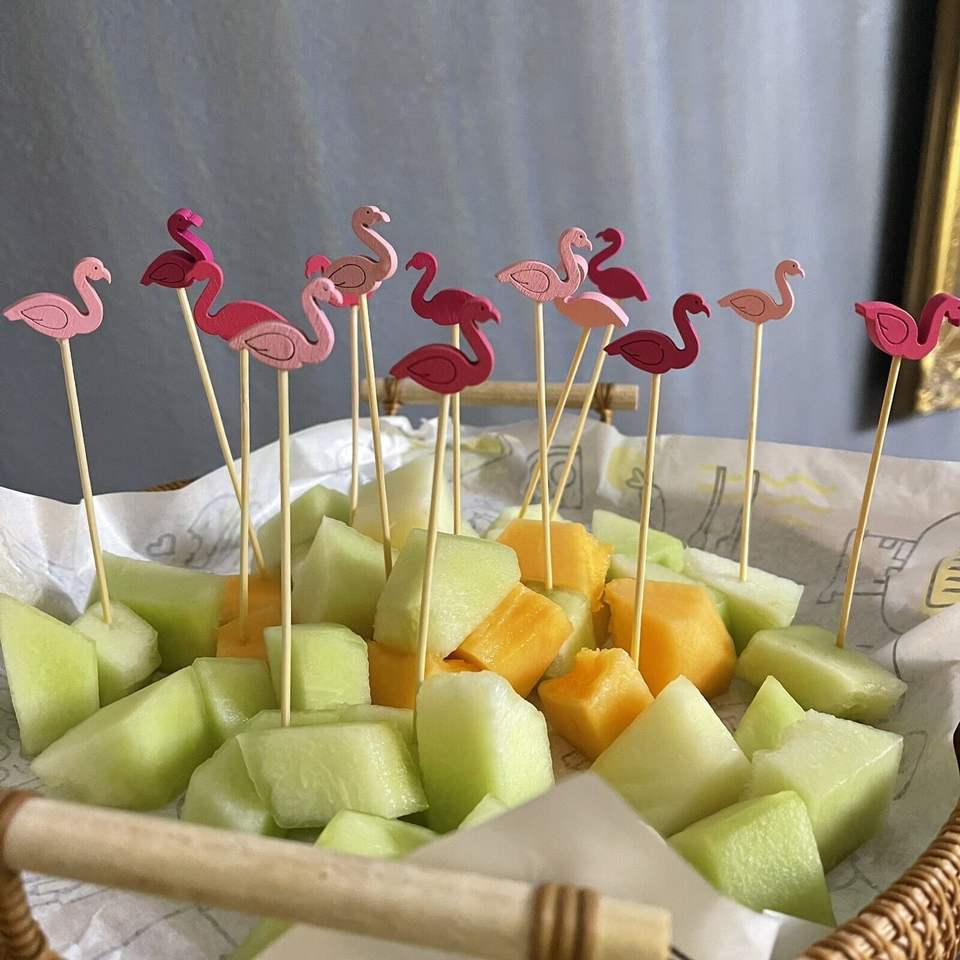 100 pezzi 5 pollici fenicottero fatto a mano in bambù stuzzicadenti e stuzzicadenti per decorazioni per feste Set di 100