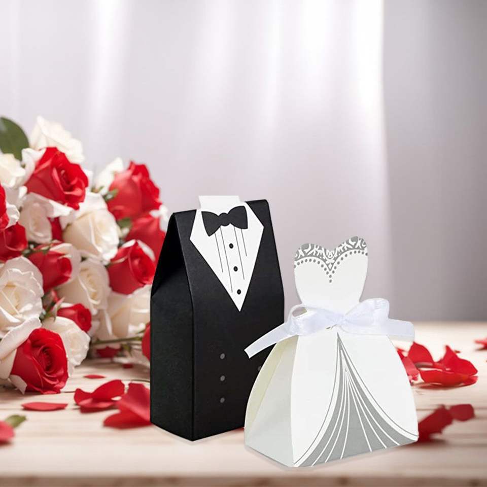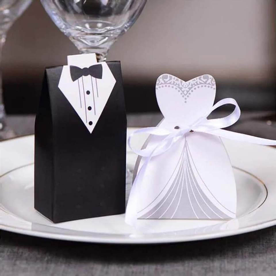 100 Scatole Regalo Creative a Forma di Smoking con Nastro per Bomboniere Matrimonio ed Eventi