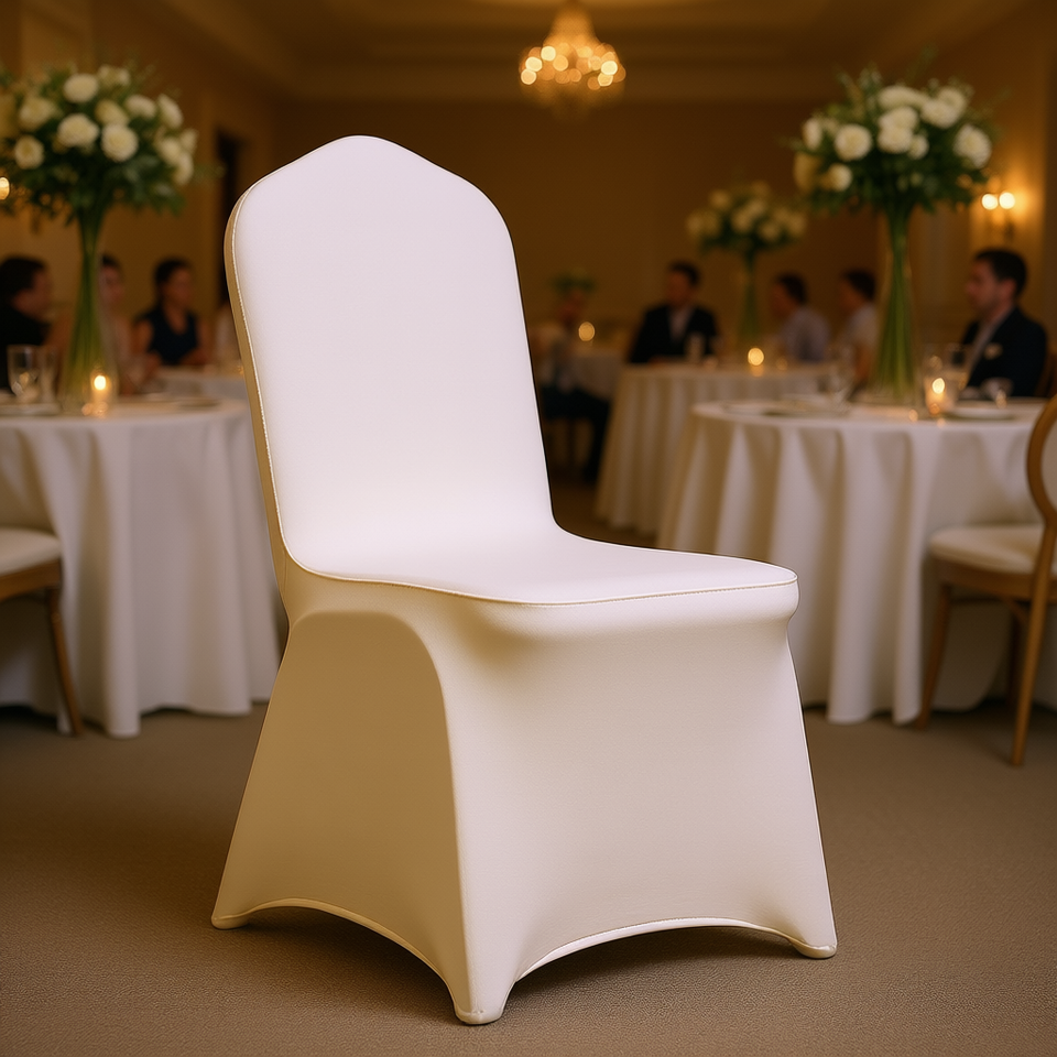Ivory White Spandex Chair Slipcovers Universal Size 100 Pcs Wedding Party Foldable Machine Washable Protection Cover