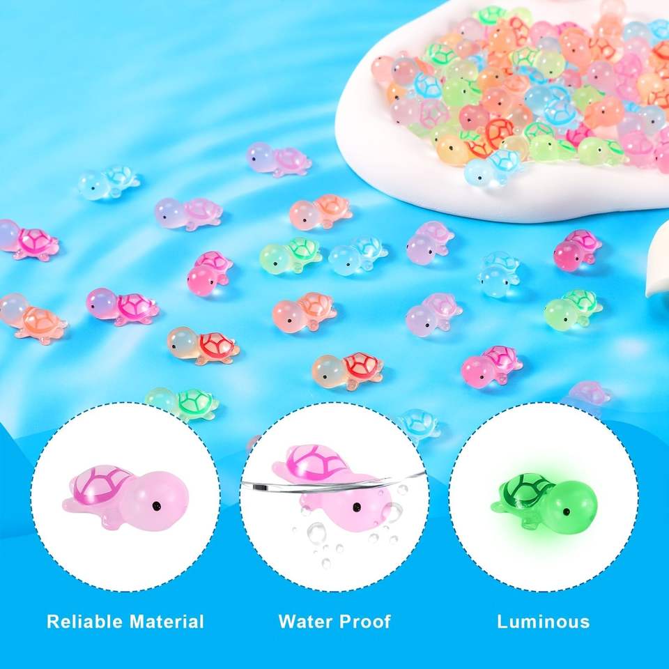 100 Pezzi di Tartarughe Luminose Colorate in Resina, Miniature che si Illuminano al Buio per Artigianato Fai-da-Te, Decorazioni per la Casa, Accessori per Giardini Fatati