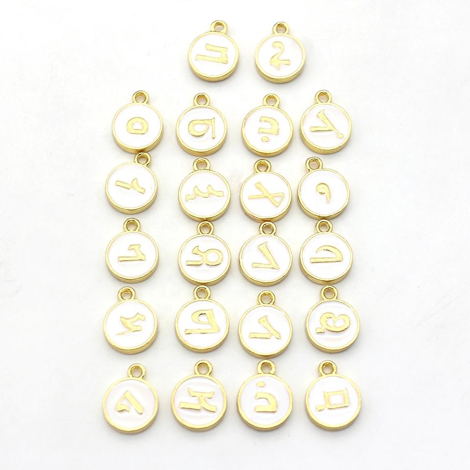 100 pz/sacchetto Ciondoli Alfabeto Assiro Smaltati Bifacciali, Gioielli Cristiani Assiri, Ciondoli Lettere per Spille/Braccialetti per Bambini