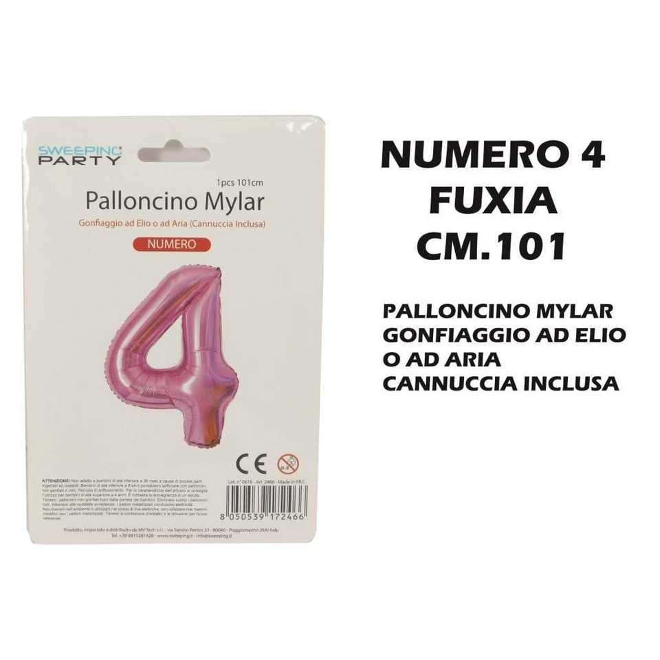 Palloncino Gonfiabile Numero 4 in Mylar Fucsia da 101cm per Uso con Aria ed Elio per Celebrazioni Festive