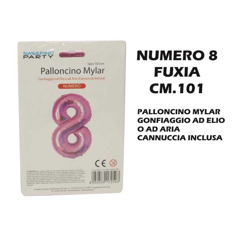Palloncino Mylar Numero 8 Fucsia da 101cm per Feste Gonfiabile con Aria ed Elio