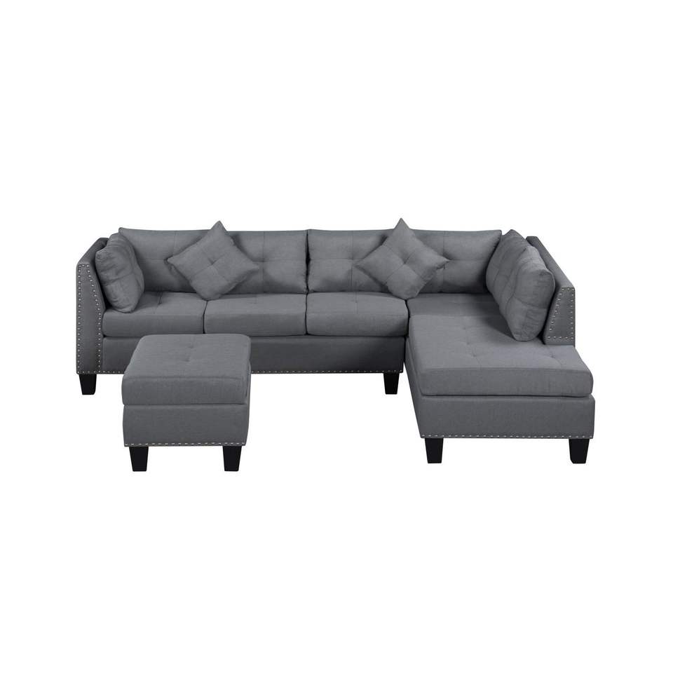 104.5 \ "divano imbottito grigio con Chaise & ottomana per mobili da soggiorno