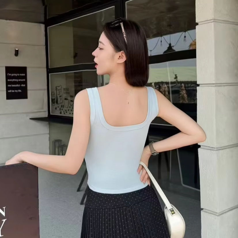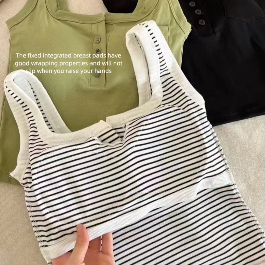 #1053 di fabbrica canottiera personalizzata da donna con cinturino largo comodo bottone elastico in cotone con reggiseno Cropped canottiera per Casual