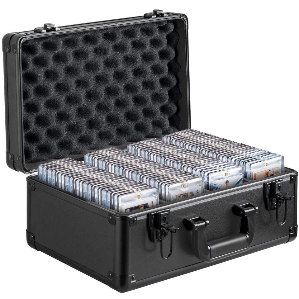 Scatola porta carte graduate PSA da 108 pezzi con serratura a chiave, 4 scomparti, porta carte sportive, divisori in schiuma, custodie e borse per CD