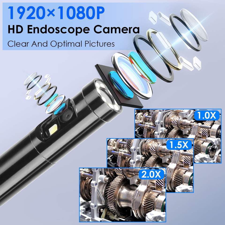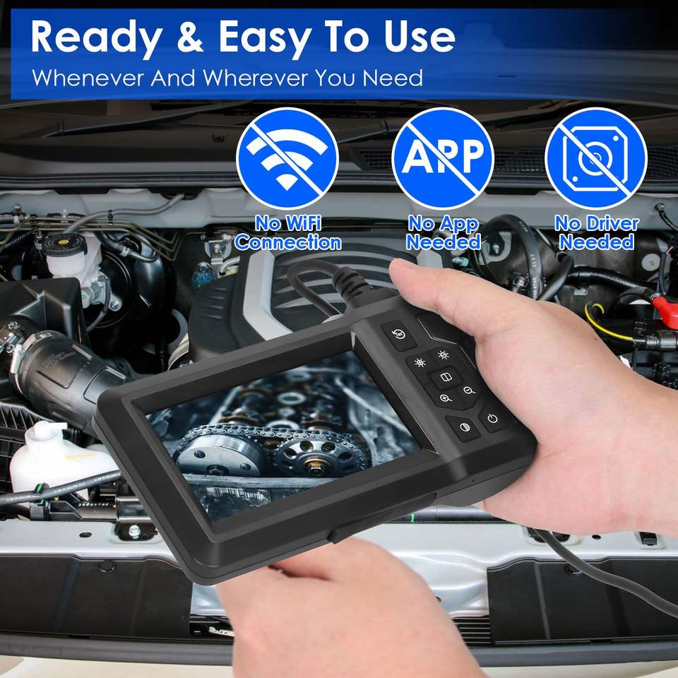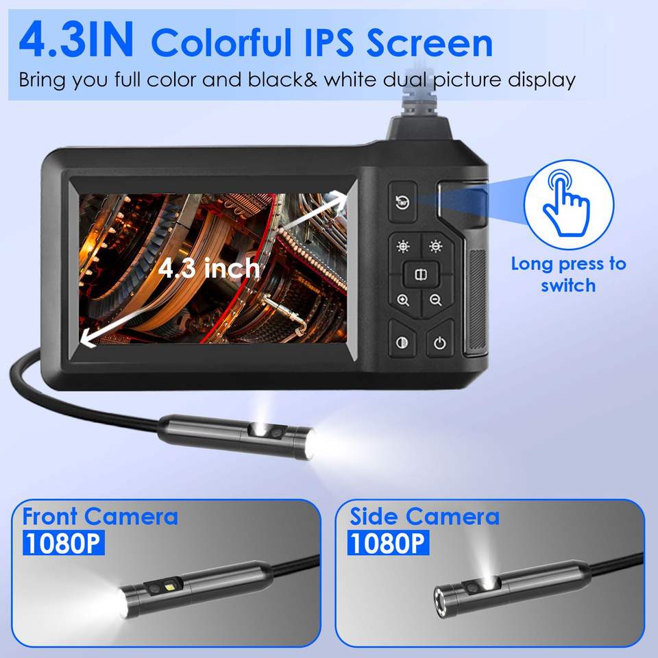 Endoscopio Industriale 1080P a Doppia Lente con 8 Luci LED, Schermo a Colori da 4.3 Pollici, Impermeabile IP67, Cavo da 5 Metri, Boroscopio da 8mm