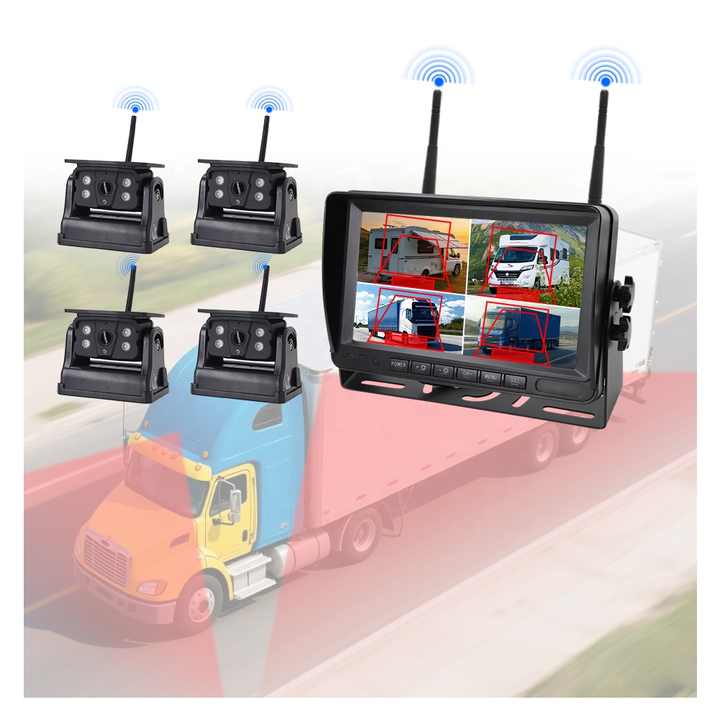 Sistema di Telecamere per Auto Wireless 1080P con Schermo da 7 Pollici, Sistema BSD, Monitor di Sicurezza Posteriore per Camion Pesanti e Veicoli RV