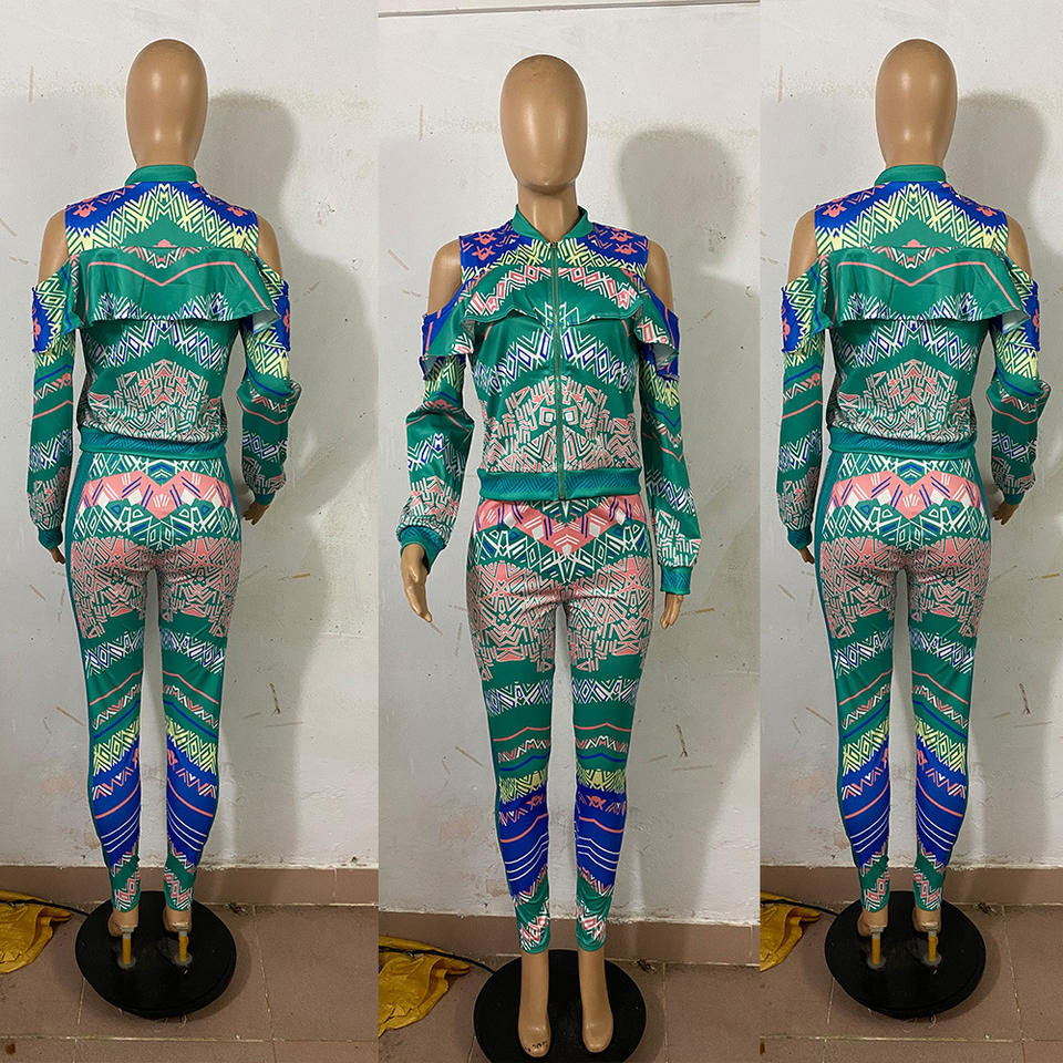 10910-MX5 con cerniera elastica Plus Size aderente con stampa due pezzi Set di abbigliamento da donna Sehe Fashion