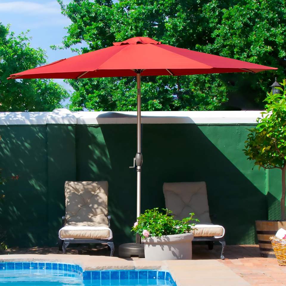 Ombrellone da Patio 10FT con Manovella e Pulsante di Inclinazione, Protezione UV, Impermeabile, per Esterni, con Base