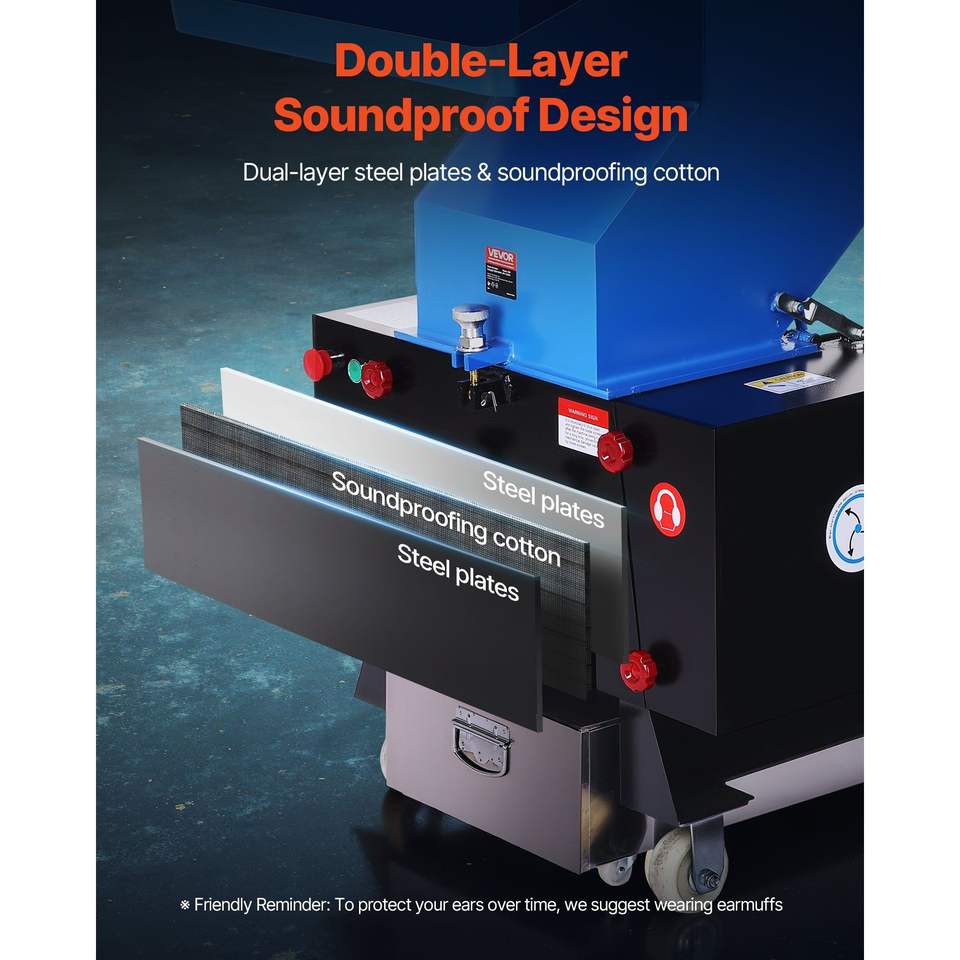 10HP/7.5KW Plastic Shredder Crusher 250-450kg/h Capacity Plastic Bottle Grinder Granulator Pulverizer Recycling Machine