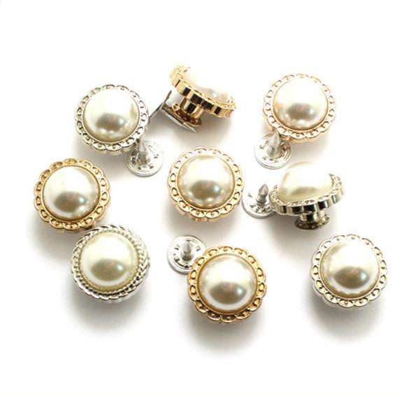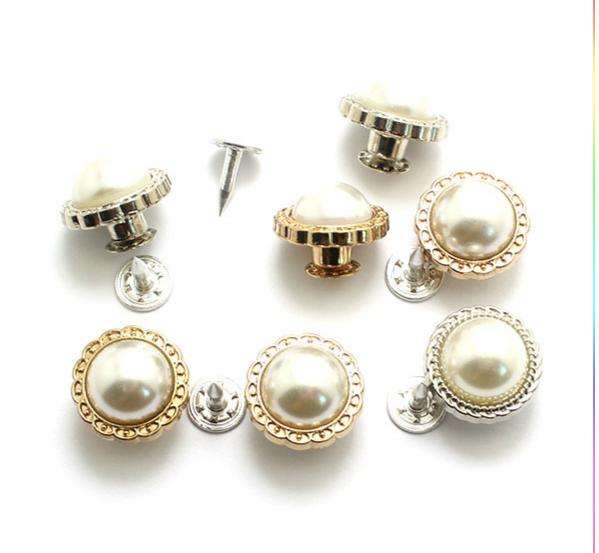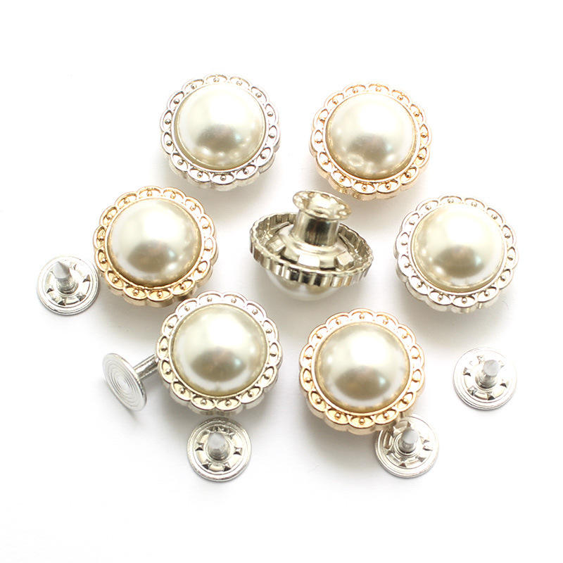 Bottoni in metallo e resina con chiodo singolo, 10MM 12MM 14MM, con texture perla, fiore antico, finitura bronzo dorato e argento liscio, per jeans