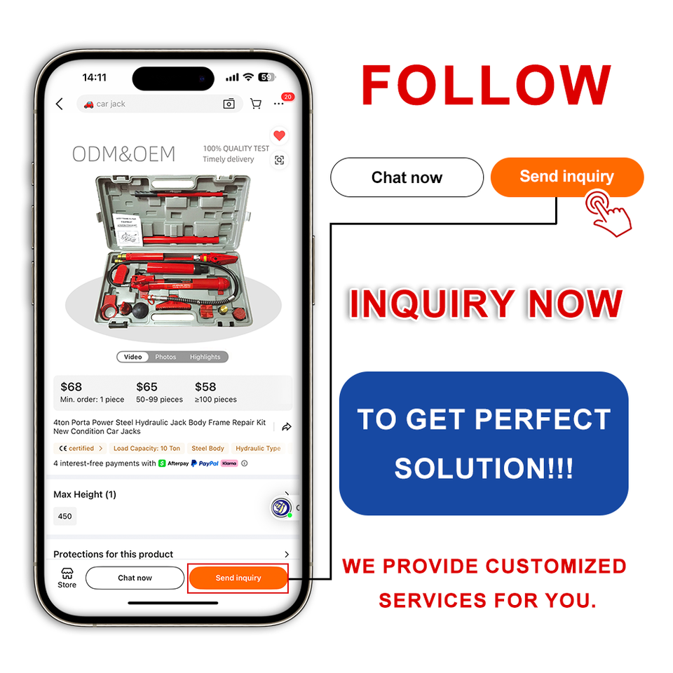 Kit di Riparazione Carrozzeria con Martinetto Idraulico Portatile 10T, Attrezzatura di Sollevamento per Garage