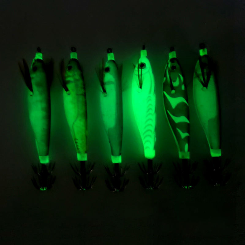 10cm 9g Squid Fishing Lures Luminous Wood Shrimp Bait Egi Squid Jig for Predator Octopus Cuttlefish
