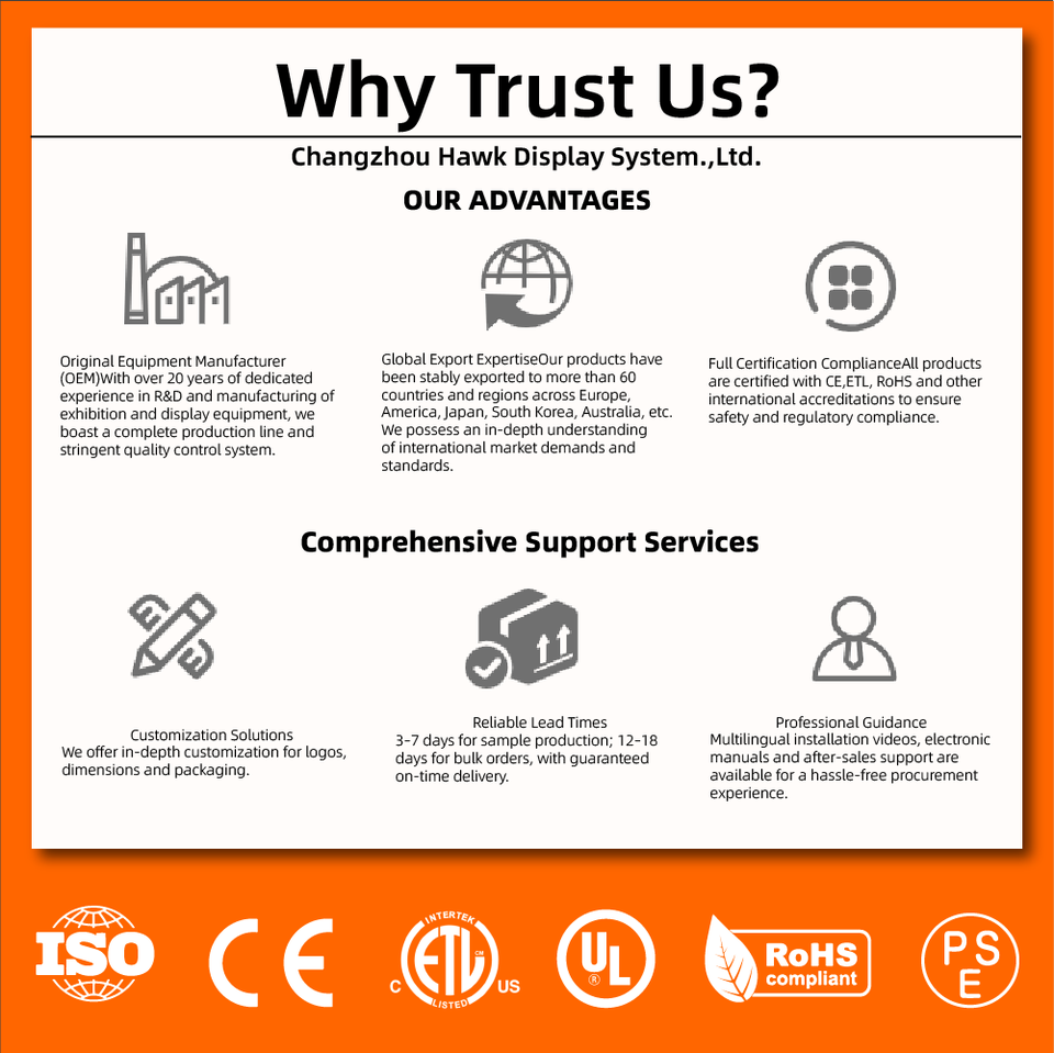 We support customized sizes, printing, logos, and lighting