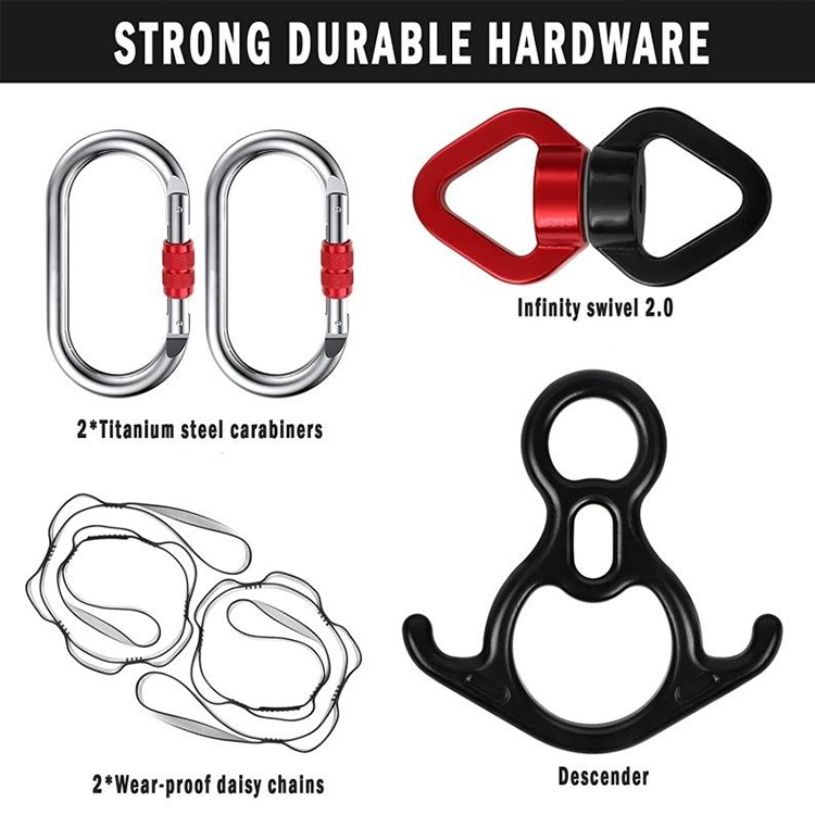Accessory:2*daisy chain+2* carabiner+1*8 Shape Descender Device+1*360° Hook