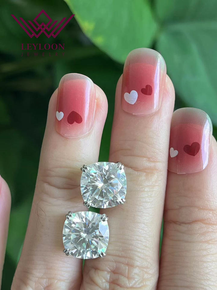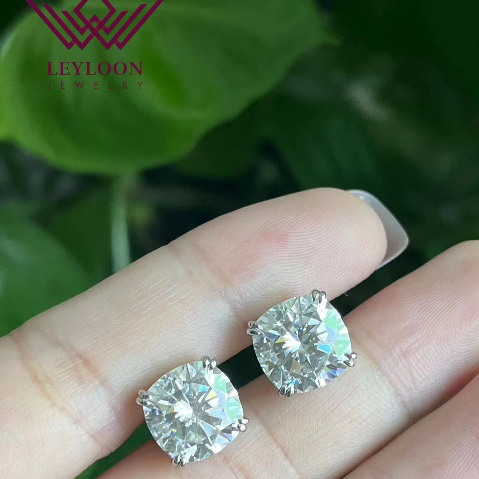 10mm*2 Cushion Cut Stud Moissanite Earrings Solitaire D Colorless VVS1 Double Claws - Custom Order
