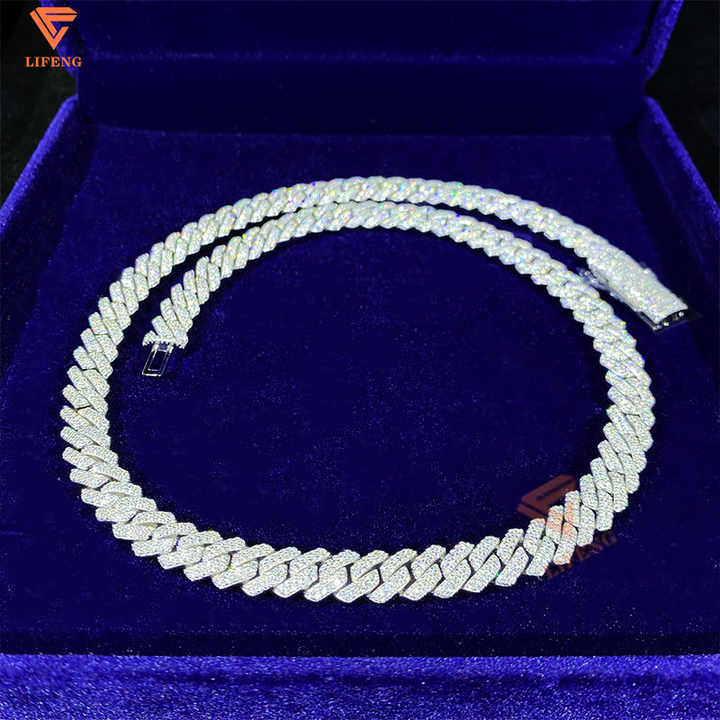 Collana a Catena Cubana da 10mm a 2 File, Spessa e Solida, in Argento Sterling 925, Gioielli Hip Hop da Uomo, con Moissanite VVS Iced Out