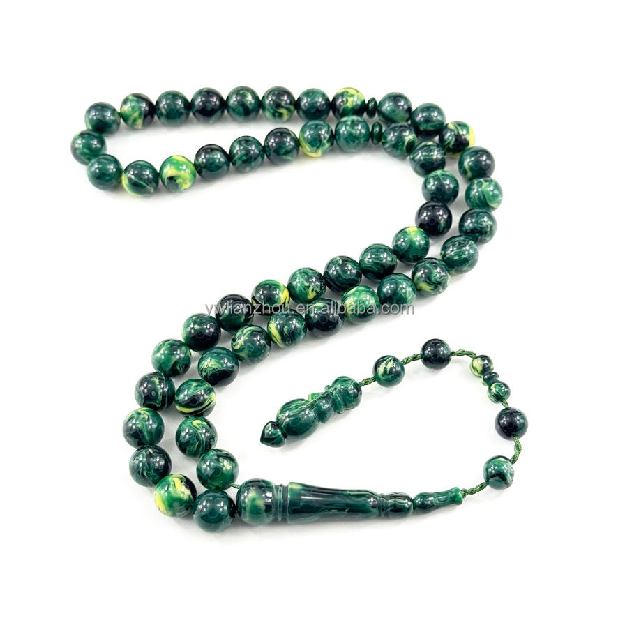 10mm Gray & White Round Misbaha Prayer Beads Set | 51+2 Islamic Tasbih with Tassel | Bulk Tusbah Beads for Muslim Worship