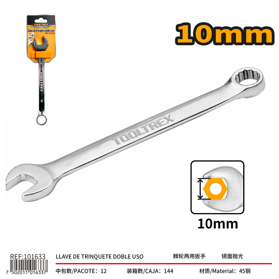 Tooltrex Ratchet Combination Wrench 10mm Double End Mirror Polished Chrome Finish Industrial Use