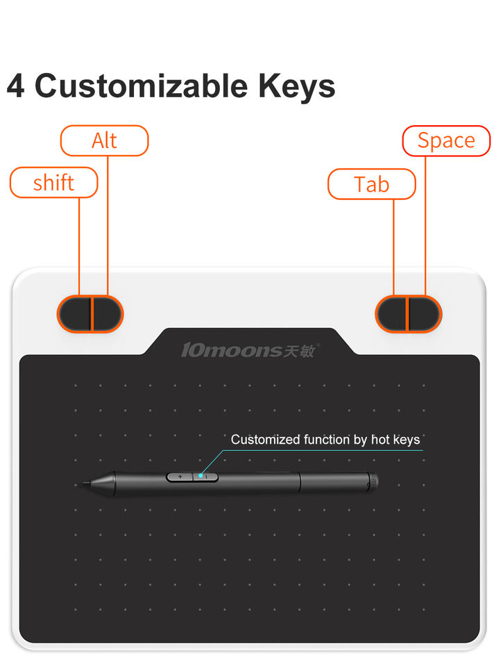 Tavoletta Grafica 10moons T503 con 6 Livelli di Pressione e Stilo, Tavoletta Digitale Professionale per Scrittura e Disegno