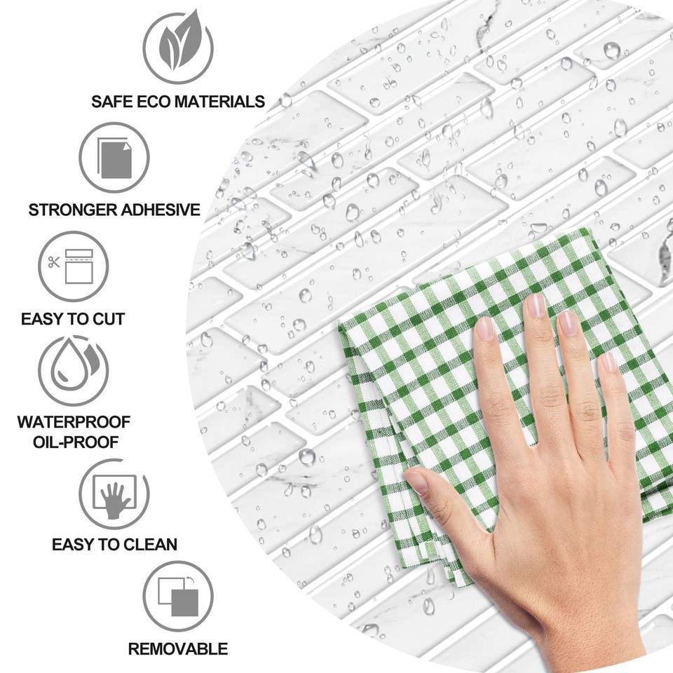 10 Pezzi Adesivi Murali 3D Effetto Marmo, Ritagliabili per Cucina, Bagno, Decorazione Casa, Dimensioni 12*12
