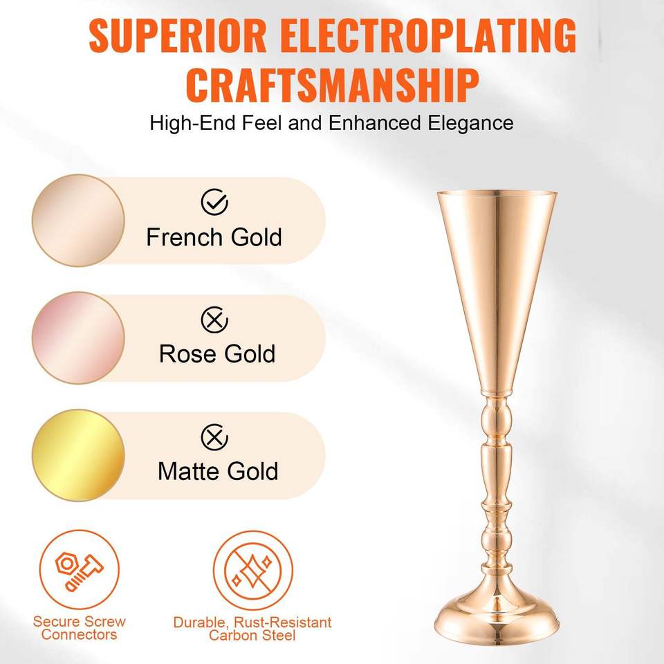 Set di 10 Vasi Metallici Dorati Alti 43cm/16.9 Pollici per Fiori, Supporto Espositivo per Tavoli, Centrotavola e Decorazioni