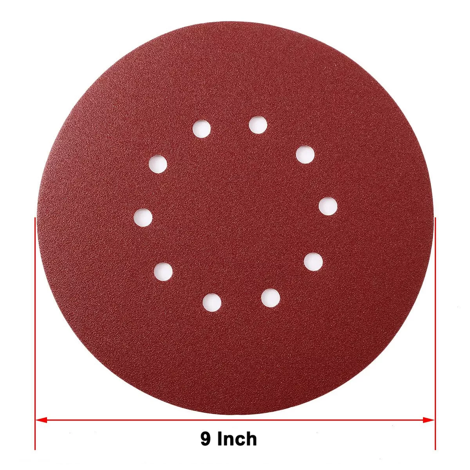 10 Pezzi Dischi Abrasivi per Cartongesso da 9 Pollici in Resina di Alluminio con 10 Fori Grana 40 con Chiusura a Strappo Disponibili in Magazzino Locale negli Stati Uniti