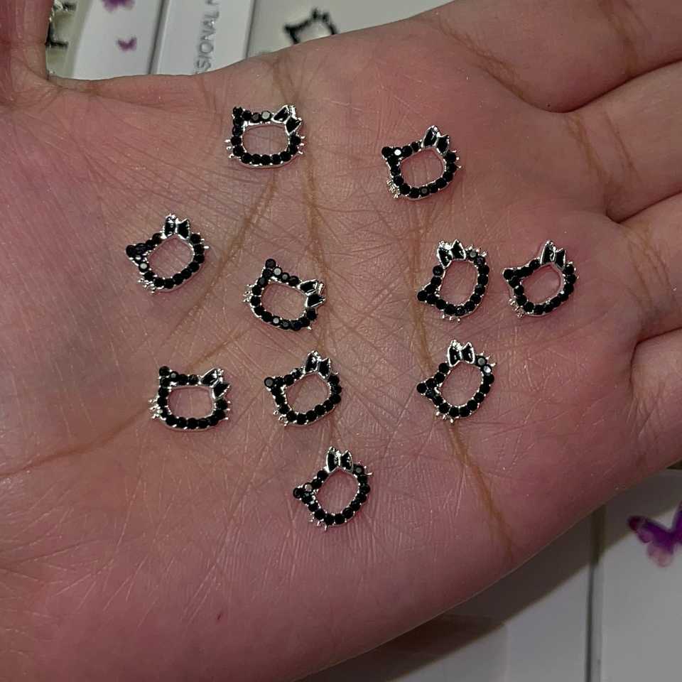 10 Pezzi Decorazioni per Unghie a Forma di Gattino, Contorno Nero 3D, Arte per Unghie in Gel, Adesivi in Resina Kawaii, Foglio Fai-da-Te per Nail Art, Moda Primaverile