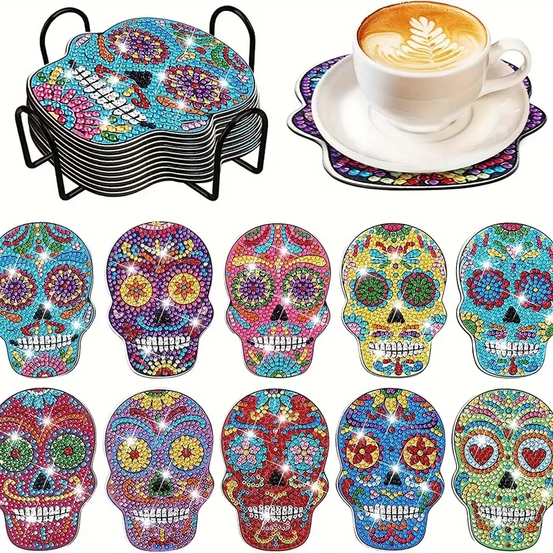Set da 10 pezzi sottobicchieri vibranti con motivo a diamante, sottobicchieri in legno scintillante fai da te con supporto in metallo nero