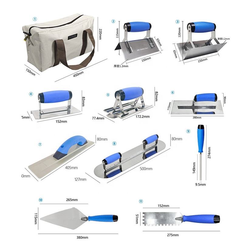 Nome del prodotto:Set di 10 utensili manuali per muratura per lavori di costruzione e posa in opera.