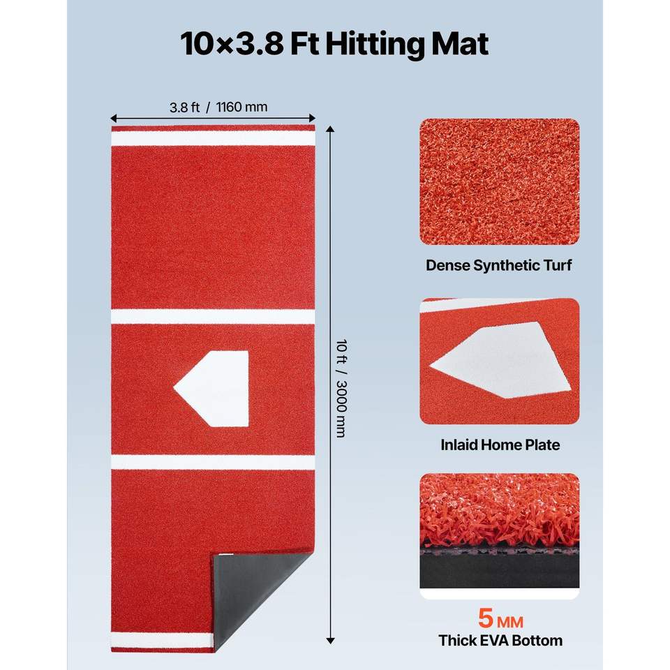 10x3.8 ft Baseball Hitting Mat Softball Batting Practice Equipment Home Plate Batters Box Turf Mats Training Gear for Home Use
