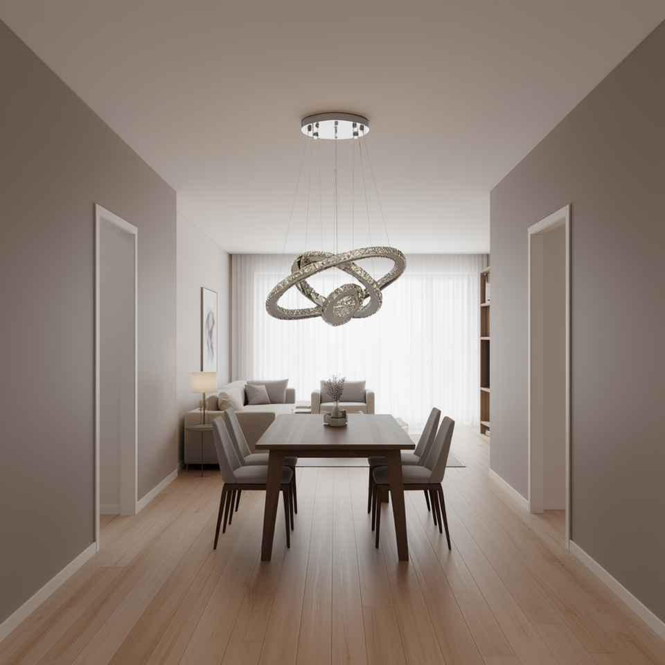 Eira Triple Hoop Crystal Chandelier 11.8 In Adjustable Height Remote Control Pure White LED Pendant Light Modern Indoor Lighting