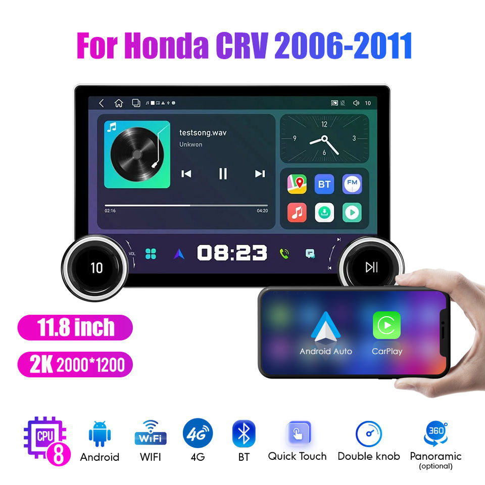 Autoradio Android 2 Din con Schermo QLED 2K da 11,8 Pollici e Doppia Manopola per Honda CRV 2006-2011, Stereo con Android Auto e Carplay
