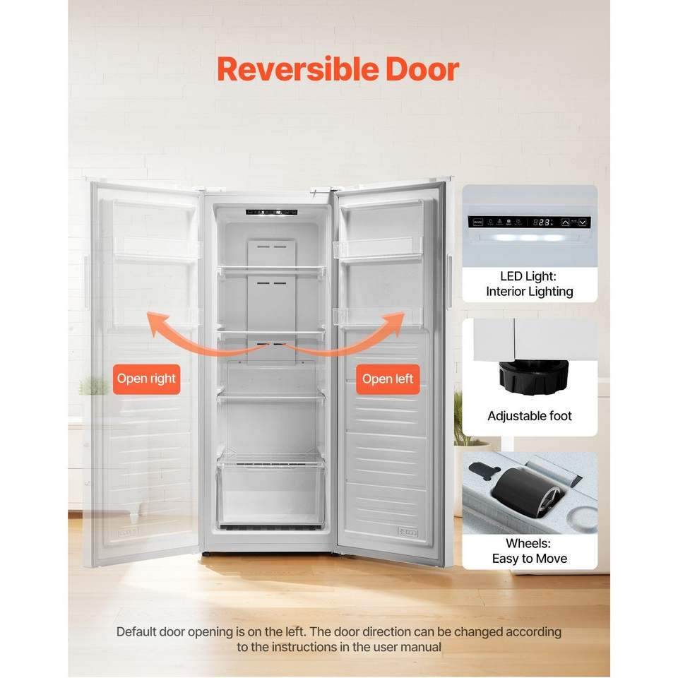 Congelatore Verticale Convertibile No-Frost da 11 Cu.Ft con Pannello di Controllo Temperatura, Porta Reversibile e Opzione Frigorifero in Vetro Regolabile