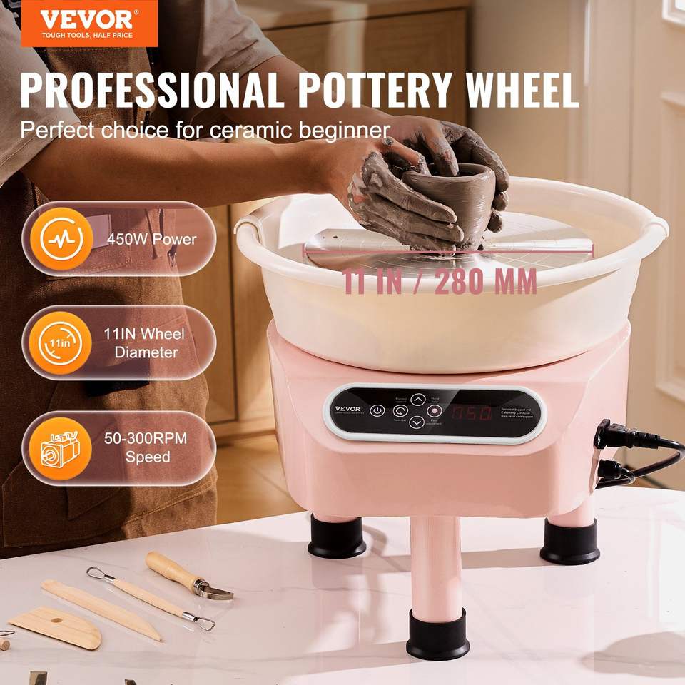 Tornio per Ceramica a Trazione Diretta con Ruota in Ceramica da 11 Pollici, Elettrico 450W, 3 Gambe di Supporto, per Artigianato Artistico Fai-da-te, 11 Utensili per Ceramica e Smaltatura