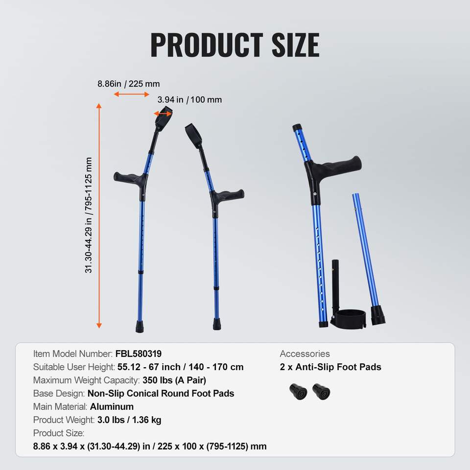 Stampelle per Avambraccio Regolabili a 11 Livelli di Altezza per Adulti, in Alluminio Leggero, con Supporto per la Camminata a 4 Livelli