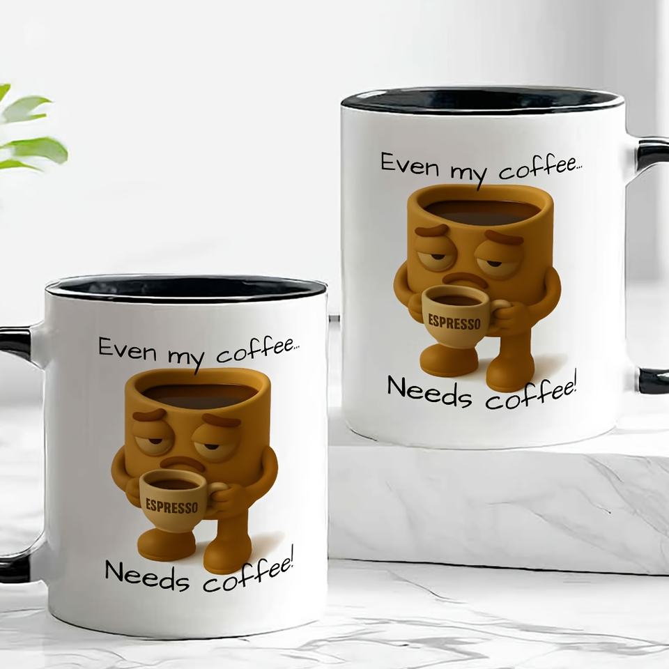 11 Oz Diytree Brand Ceramic Coffee Mug "Even My Coffee Needs Coffee" Funny Quote for a Home Office Gift