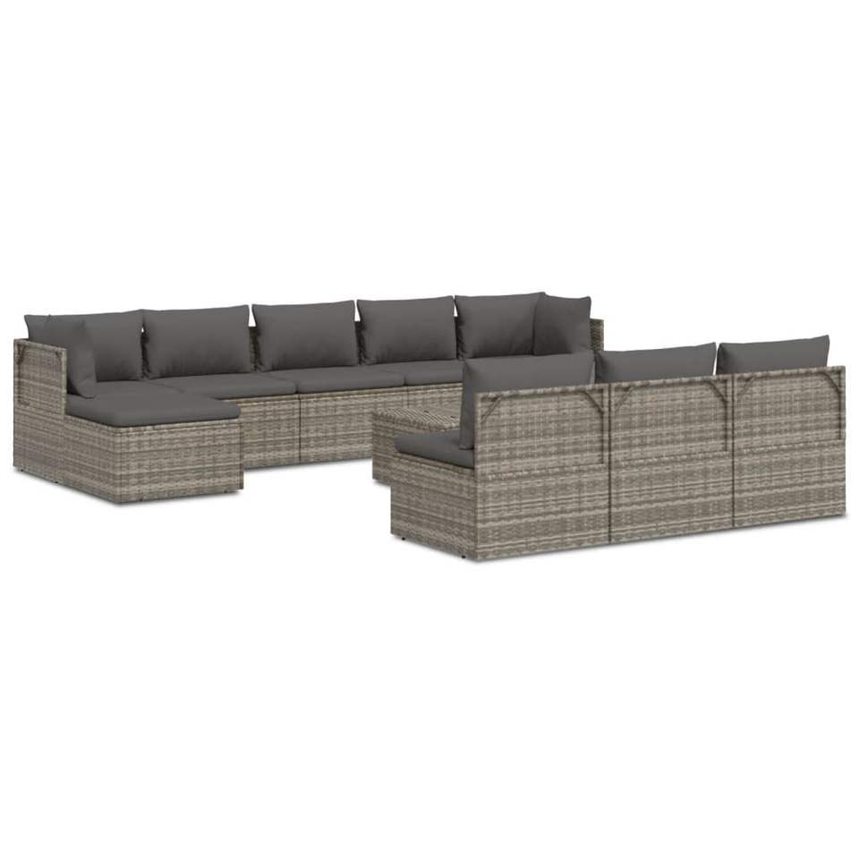Set salotto da 11 pezzi in Poly Rattan grigio con cuscini per rilassarsi in giardino